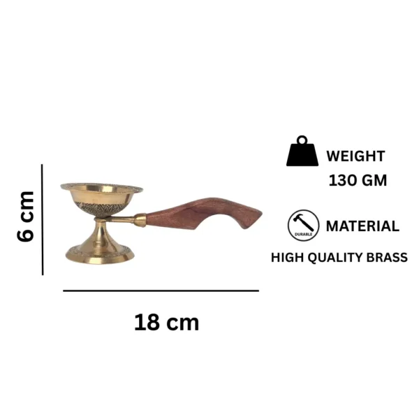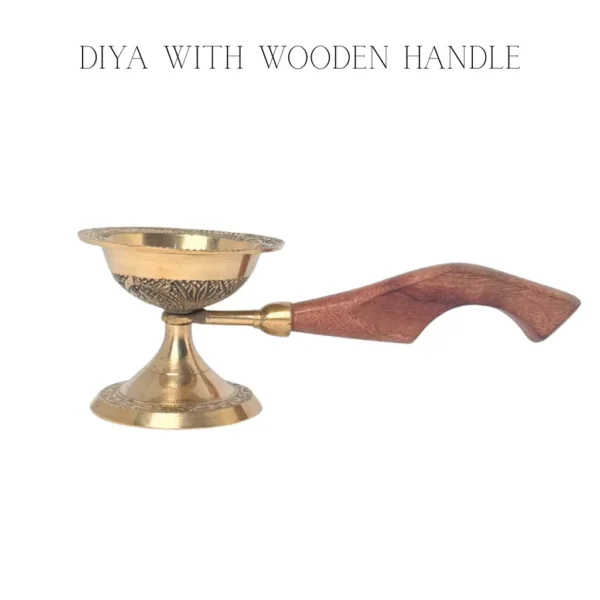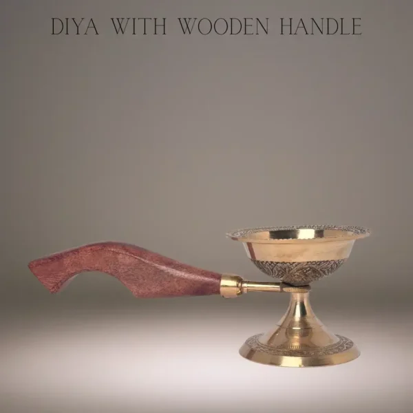 Enhance your daily rituals with this beautifully handcrafted Brass Aarti Diya with Wooden Handle. Made from high-quality pital (brass), this diya is perfect for performing aarti during daily worship, Navratri, Diwali, or any spiritual ceremony.