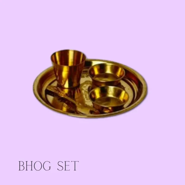 The Brass Bhog Set is specially designed for devotional offerings during puja and temple rituals. In Hindu tradition, bhog (food or prasadam) is first offered to the deity as a mark of respect and devotion before partaking. This elegant set, made from high-quality brass, includes a plate and small bowls to hold sweets, fruits, or food items for offerings.